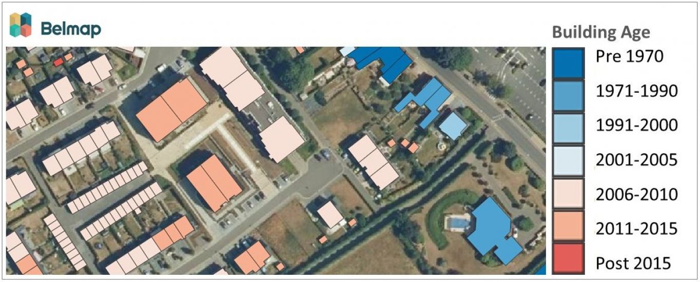 The age of a building is a valuable parameter for construction, insurance and energy companies. This information can be found in the Land Registry or from the municipality, but in Belgium and Luxembourg, this data is not public. This is about to change with Building Age: a new data module within Belmap that gives you the age of all the buildings in the Benelux.